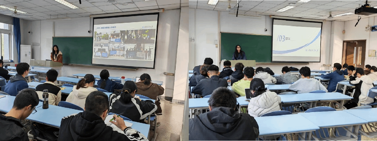 接着,刘嘉璐详细介绍了学校提供的短期交流、联合培养、暑期研修、学术会议等多类型出国(境)项目,并结合生态环境学科特点,重点推荐了一批专业契合度高的优质项目;同时解读了学校与学院层面的支持措施。活动还邀请到学院具有丰富出国(境)交流经历的学生代表2022级本科生何水晴和2023级本科生王翔分享实践感悟;他们结合自身参与跨文化学术、科研项目的体验,讲述了在国际视野、专业能力与综合素质方面的收获,为计划出国(境)的同学提供了有益参考。