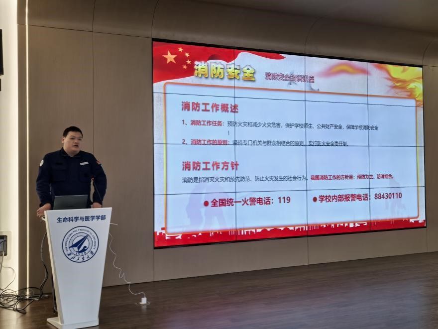 培训中,许磊老师结合校园火灾相关情况及学院专业特点,深入剖析火灾成因与危害,重点讲解了火灾预防要点、火场逃生技巧及应急处置原则等核心内容。通过互动问答,许磊解答了学生关于消防安全的疑问,纠正常见认知误区,帮助大家树立起主动防范的安全意识。