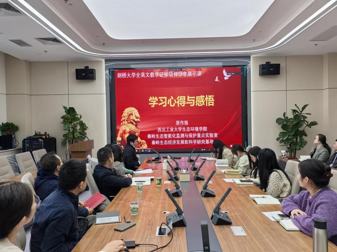 为推动国际先进教学理念与实践落地,以全英文教学法助力生态学领域领军人才培养,11月3日,由党委教师工作部主办、生态环境学院承办的第25期“逐梦三航”教师沙龙《EMI全英文教学法赋能生态学领军人才培养——剑桥大学全英文教学研修项目分享展示课》,在长安校区生态环境学院B107会议室顺利举行。生命科学与医学学部党委书记段利兵、党委副书记张敏乔,生态环境学院副院长蔡晶出席活动,生态环境学院新晋升长聘副教授、新进教师代表,学院青年教师、博士后代表、院办工作人员等20余人参与了本次分享交流。活动由张敏乔主持。